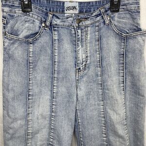 Vintage VISUAL By FEN X CHEN Jeans Y2K Wide Leg Capri Stone Wash Womens 16 Blue