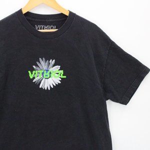 Vintage VITRIOL Shirt Mens Black Short Sleeve Big Logo Graphic Flower Sz L Y2K