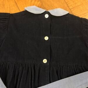 VIVE LA FÊTE Smocked corduroy dress in navy and light blue size 2 years old. Buttons on back with ribbon and spare button underneath dress.