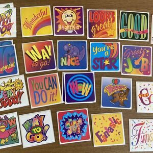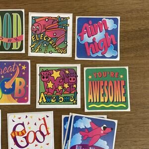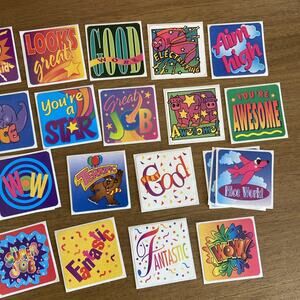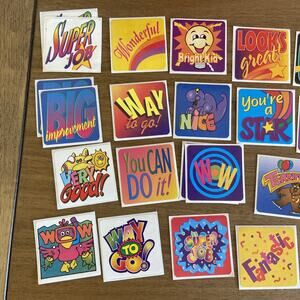 Vintage VTG 2" Square Mixed Lot Classroom Classwork Reward Stickers Lot of 30