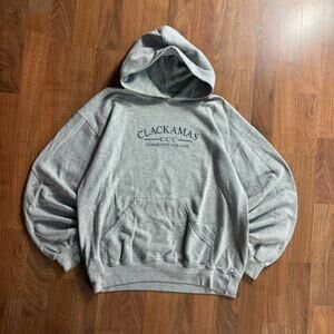 Vintage VTG 90’s Y2K Grey Boxy Essential Clackamas Community College Hoodie