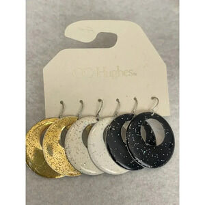 Vintage VTG CC Hughes Dangle Earrings 3 Pairs Gold Tone White Black Glitter