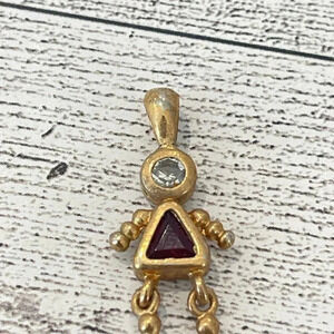 Vintage VTG Gold Tone Birthstone Girl Pendant July Or January Red Birthstone