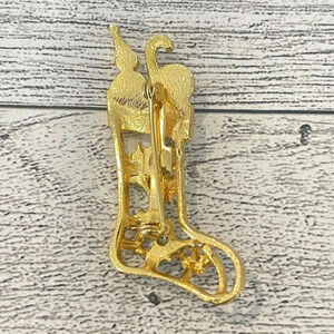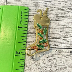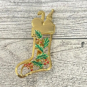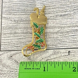 Vintage VTG Gold Tone Enamel Christmas Brooch Stocking Pin