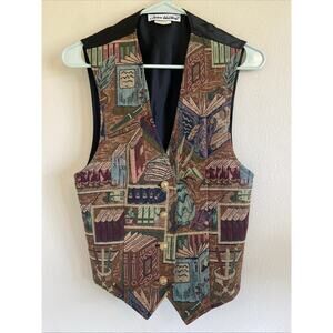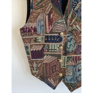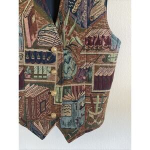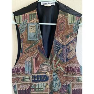 Vintage VTG Joan Walters Library Books Office Academic Wearable Art Vest Small
