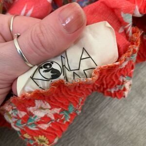 Vintage Koala red floral maxi/midi skirt. This skirt has an elastic waist and a non functional button.