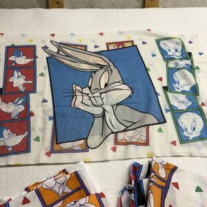 Vintage VTG Looney Tunes Twin Size Flat, Fitted Sheet And Pillow Case 1993