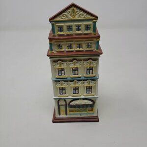 Vintage VTG Partylite Cafe Prague Tealight House Ceramic New in Box 6.25” Tall