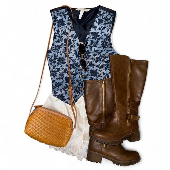 The cutest little vintage blue floral vest with button-up front and tie back detail. Size 8..fits like a US M.