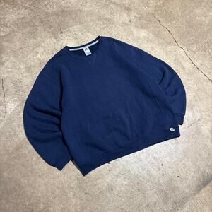 Vintage VTG Y2K Navy Russell Athletic Boxy Crewneck Sweatshirt