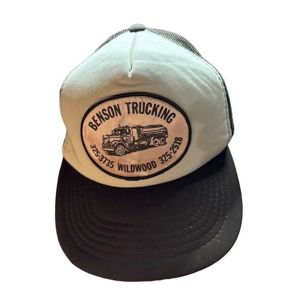Vintage VTG snapback hat Benson trucking dad cap black and gray truck patch