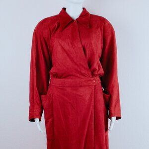 Vintage Vakko Red Suede Shirtdress Avant Garde 80s Size 8
