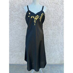 Vintage Val Mode black satin nightgown with gold embroidery detail. No flaws but the fabric has some slight rippling in it? It's not very noticeable, but I like to be as descriptive as I can with my listings :) See pics please! In otherwise fabulous condition and from a smoke and pet free home