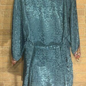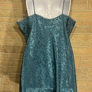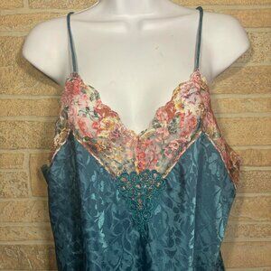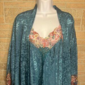 Vintage Val Mode Green Silky Satin Lace Negligee Chemise Lingerie and Robe Large