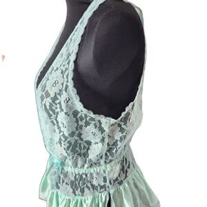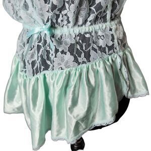 Vintage Val Mode Lingerie Small Aqua Blue Negligee Lace Nylon Ruffle