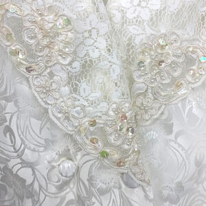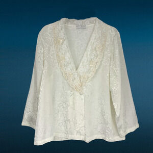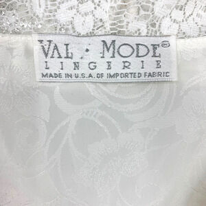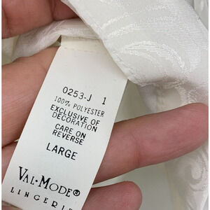 Vintage Val Mode Lingerie Sz L White Satin Jacquard Lounge Jacket Lace Collar