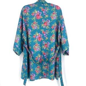 Vintage Val Mode Lingerie Womens Floral Kimono Robe and Cami Set blue Green Sz Medium
