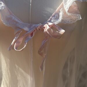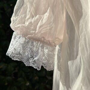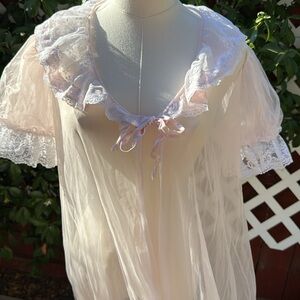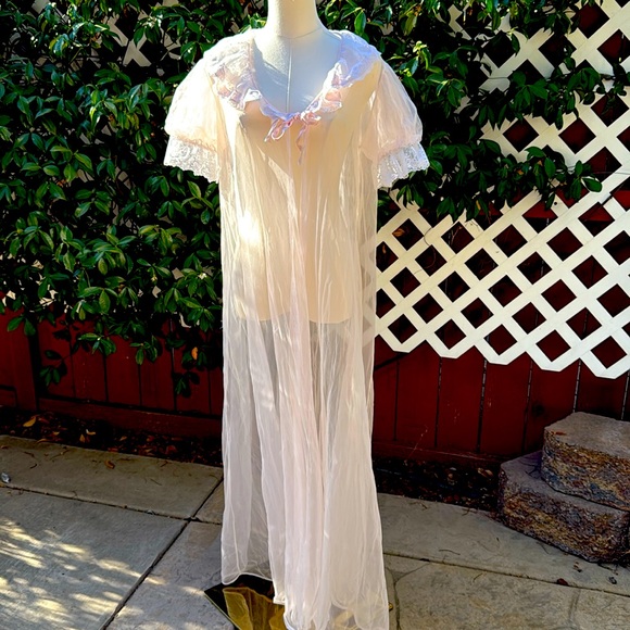 Vintage Val Mode Lingerie baby pink Sheer Ruffle Puff/lace Sleeve Duster Robe