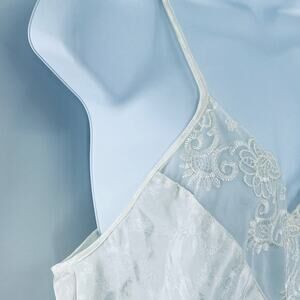 Vintage Val Mode Lingerie White Satin Lace Trim Spaghetti Strap Short Gown
