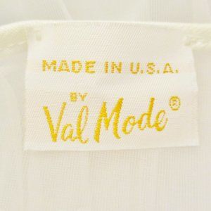 Vintage VAL MODE women's negligee peignoir robe. Size M. White. Short sleeve. Tie close. Full lace front bodice. Sheer bottom and back. Pearl buttons closure on front. This robe is in excellent pre-owned condition. There is a small hole in the side seam (see photo #14). No other holes, tears or stains that I can see.