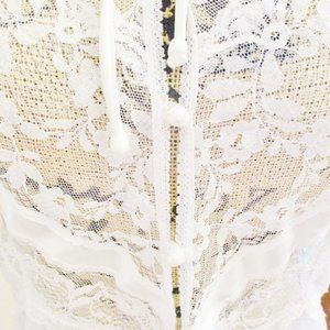 Vintage Val Mode Women's Negligee Peignoir Robe White Lace Bodice w/Tie Close, M