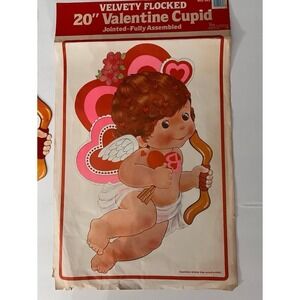 Vintage Valentine Cupid’s Arrow Flocked and Jointed Valentine 80’s