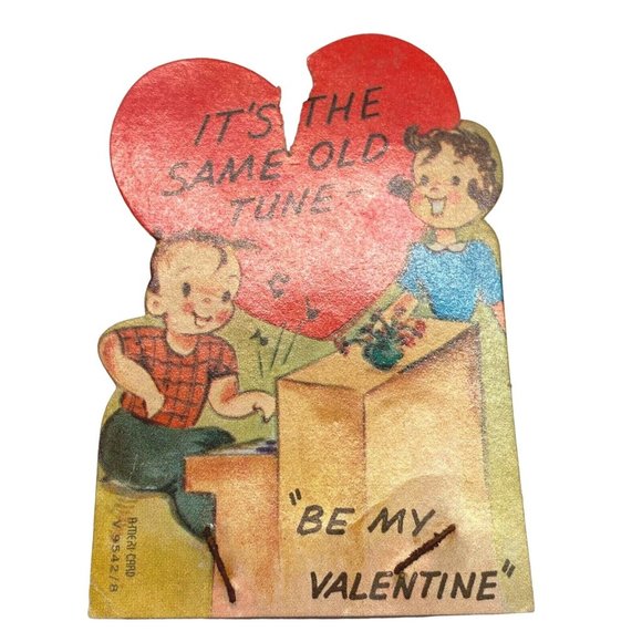 Vintage Valentine Greeting Card 1940s Piano Player Same Old Tune Music Die Cut