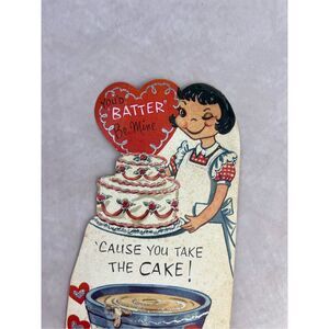 Vintage Valentine’s Day Card Anthropomorphic Cake Baker Bakery