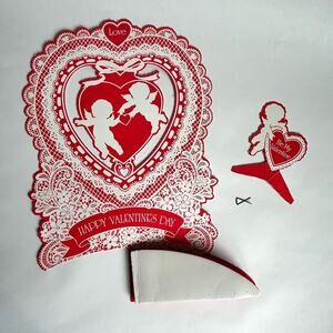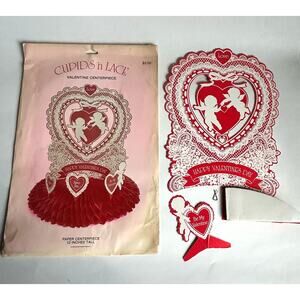 Vintage Valentine's Day Honeycomb Paper Table Top Display Cupid's in Lace Hearts