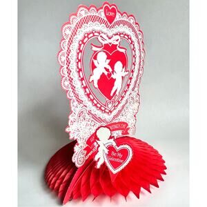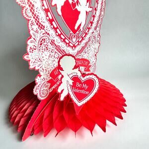 Vintage Valentine's Day Honeycomb Paper Centerpiece Display Cupid Hearts