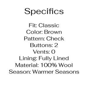 Vintage Valentino 44L Brown Check Wool Two Button Sport Coat Blazer Jack…