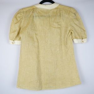 Vintage Valentino Boutique Tan & White Linen Button Up Top Made In Italy, Size 6