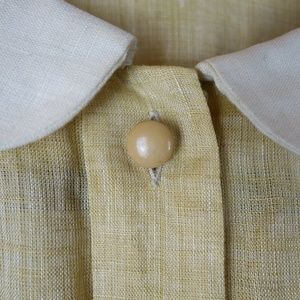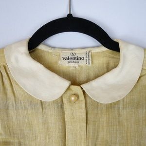 Vintage Valentino Boutique tan and white linen button-up top with shoulder pads made in Italy.