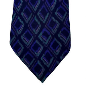 Vintage Valentino Cravatte 100% Silk Handmade Geometric Blue Neck Tie Italy