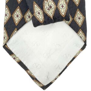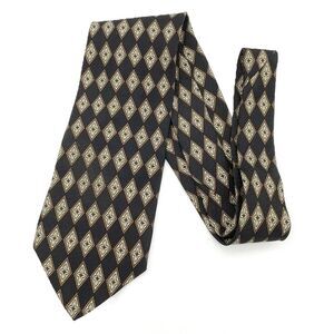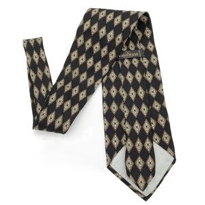 Vintage Valentino Cravatte 100% Silk Necktie Diamond Print Chocolate Gold Black