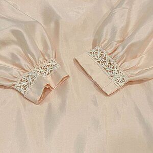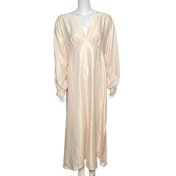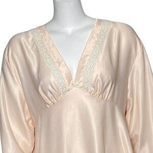 Vintage Valentino Intimo Long Nightgown Womens Size L Satin Lace V Neck Pink