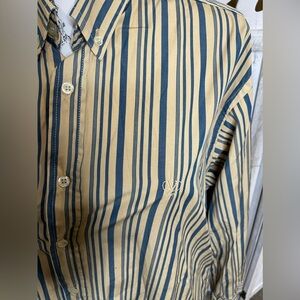Vintage Valentino Jeans Button Down Shirt Mens Size Large 40 Blue Yellow