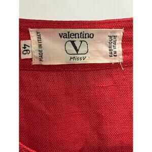 Vintage Valentino Miss V Red Gold Button Down Dress 100% Linen Size 46 Italy