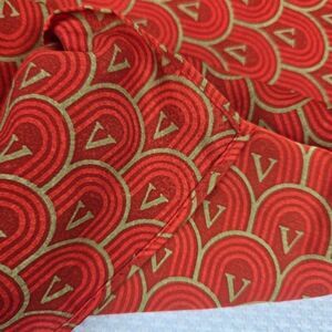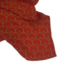Vintage Valentino Orange Red Gold Scarf V Scallop Design Logo Square Polyester