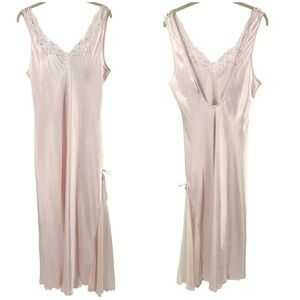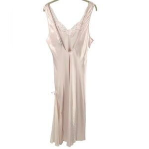 Vintage Valentino Slip Dress Size Large Pink Satin Maxi Gown Lace Mesh Bow Long