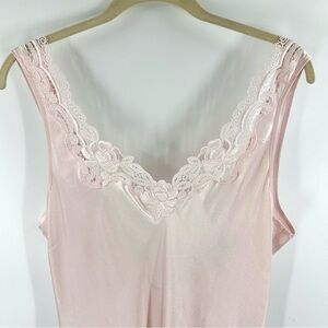 Vintage Valentino Intimo Slip Dress Nightgown Size Large Pink Satin Maxi Gown Lace Mesh Bow Long