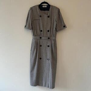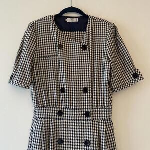 Vintage Valentino wool and silk white and black houndstooth checkered dress