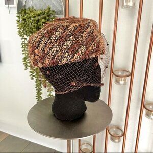 Vintage Valerie Modes Pillbox Hat Union Made Netted Hat Glittery Brown Tan