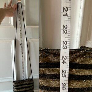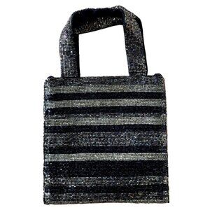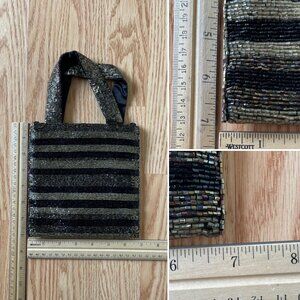 Valerie Stevens Beaded Evening Bag Handheld Purse or Crossbody Black Gold Striped