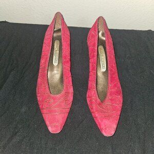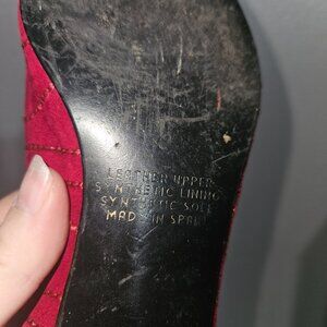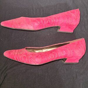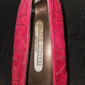 Vintage Valerie Stevens Red Suede Embroidered Heels Size 8.5. Made in Spain