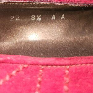Vintage Valerie Stevens Red Suede Embroidered Flats Size 8.5. Made in Spain. Heel size is half an inch.