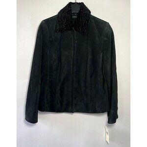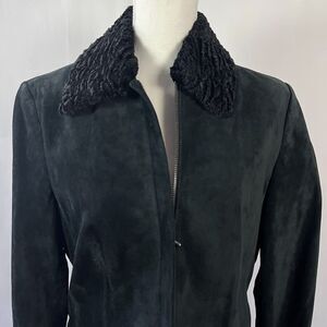 Vintage Valerie Stevens Suede Leather Faux Fur Collar Jacket Medium Y2k Boho