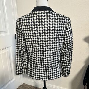 Beautiful Valerie Stevens black and white houndstooth blazer, Chanel style. Classic!