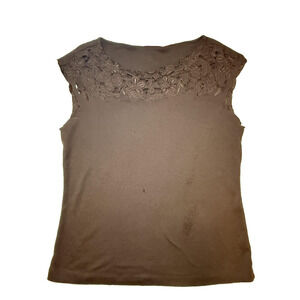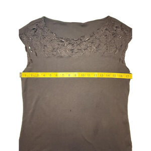 Valerie Stevens Vintage Blouse Womens Medium Brown Floral Lace Embroidered Top Cotton