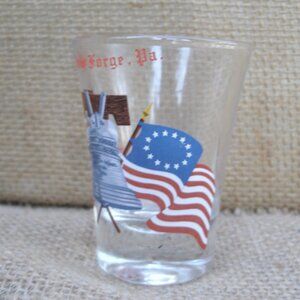 tags: glass, glassware, shot glass, valley forge, Pennsylvania, souvenir, collectible, display, serving, dining, barware, serve ware, drink ware, kitchen, liberty bell, flags, american revolution